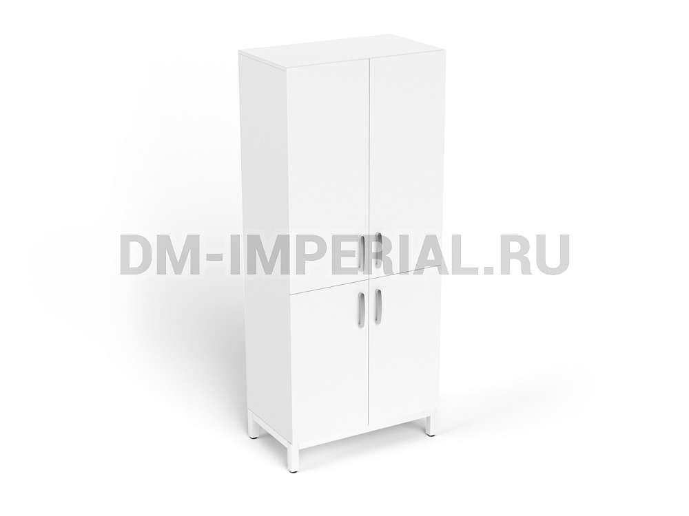 Габаритный размер изделия: 800x450x1900 мм. Корпус изделия выполнен из ЛДСП 16 мм. Кромка ПВХ 2 мм на фасадах, каркас 1 мм. Задняя стенка ЛХДФ- 3мм в паз. Каркас основания шкафа из профильной трубы 25x25 мм, высотой 155 мм, окрашенного методом порошкового напыления. Наличие: 4-х распашных дверей с замками, 4-х полок, фурнитуры для крепления к стене, регулируемых опор для компенсации неровностей пола, кромки из ПВХ. Ручка скоба с межцентральным расстоянием Ручка скоба с межцентральным расстоянием 128мм. Крепеж скрытый (эксцентриковая стяжка. стяжка - полкодержатель, конфирматы). Регулируемые опоры для компенсации неровностей пола.