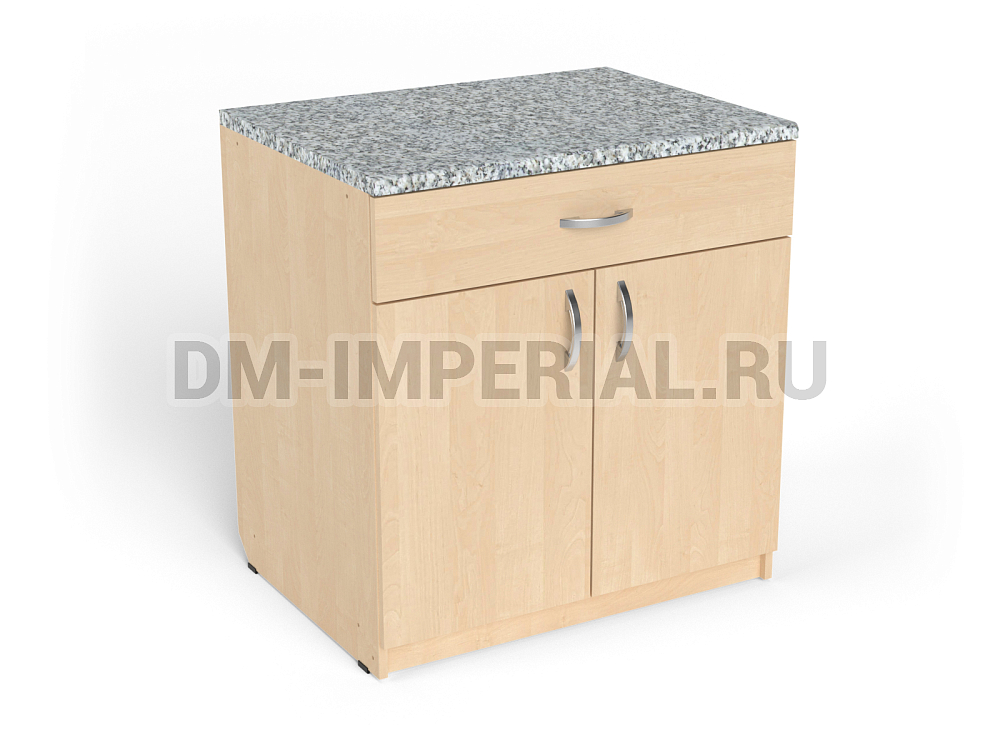Представленная на данной странице модель является более крупным вариантом этой тумбы. Габариты - 600х600х850 мм. Конструкция включает: вместительный верхний ящик и два нижних шкафчика с полкой и дверцами. Модель напольная, устанавливается на ножки с антискользящим покрытием. Предусмотрен цоколь для предотвращения скапливания под тумбой мусора, грязи и пыли.