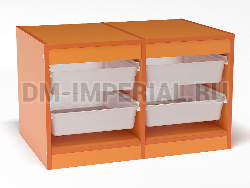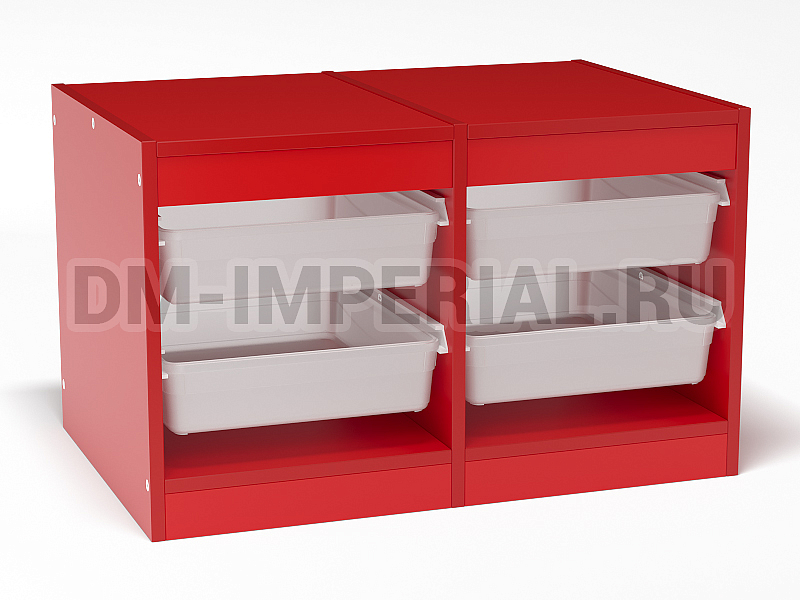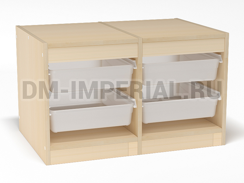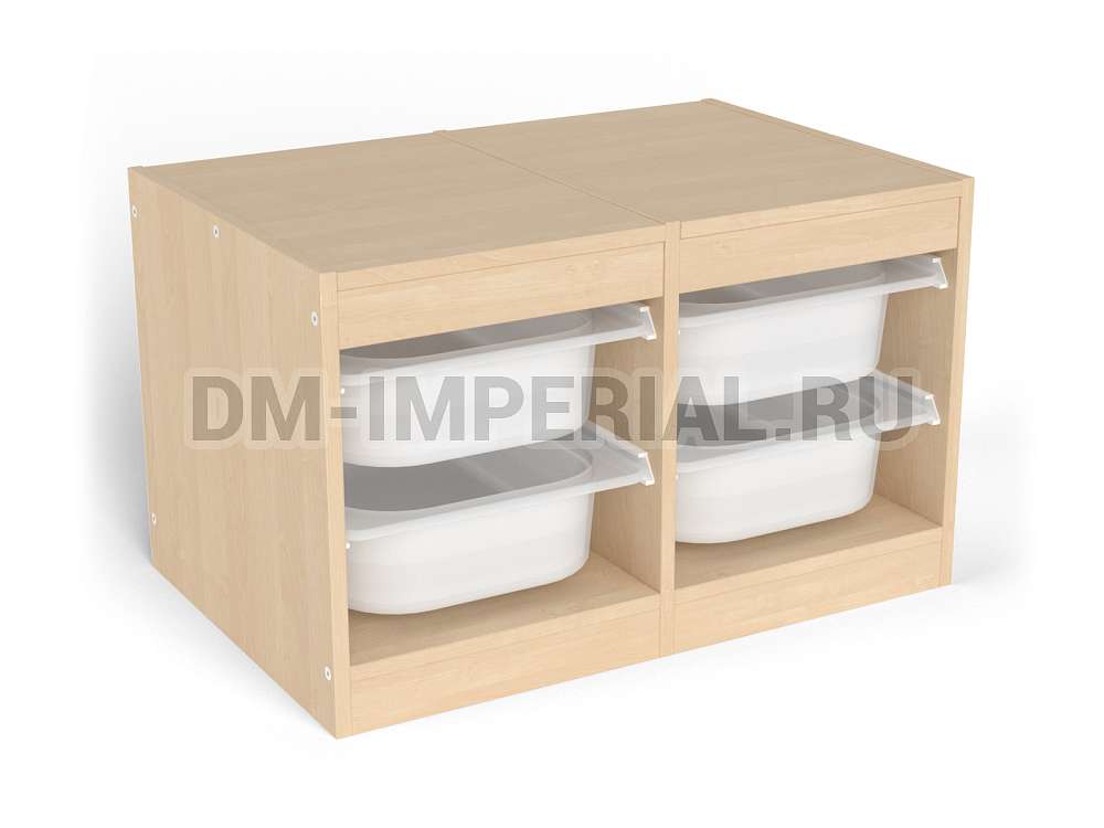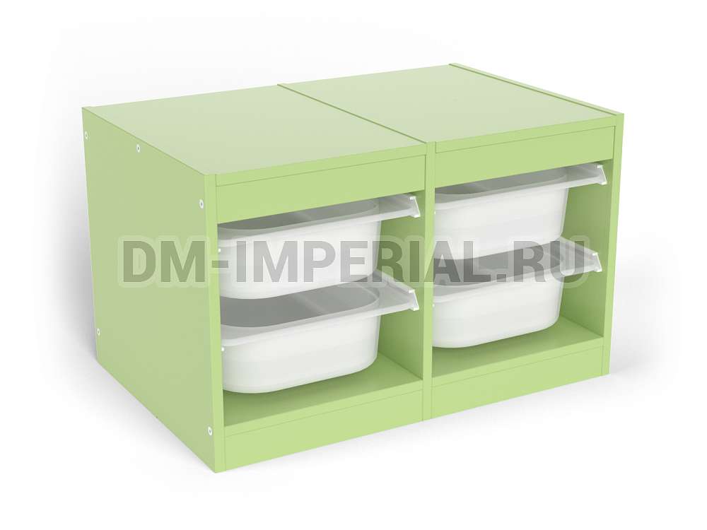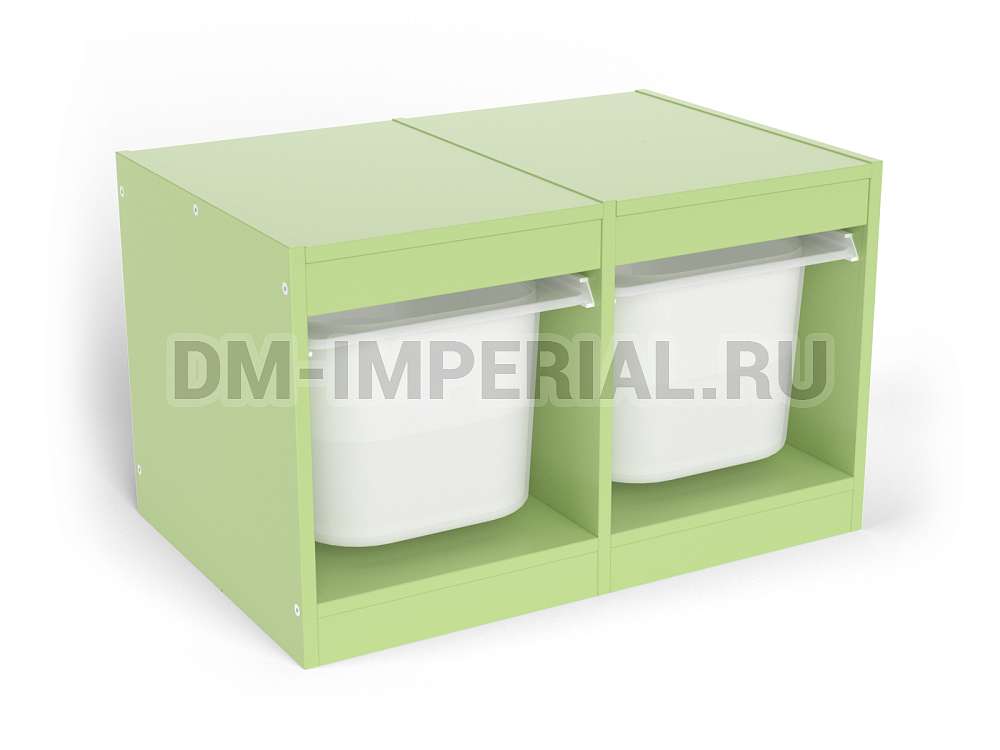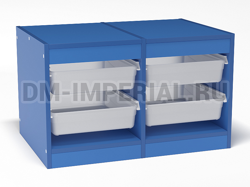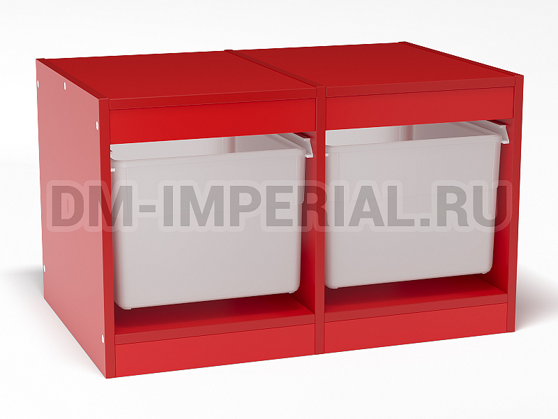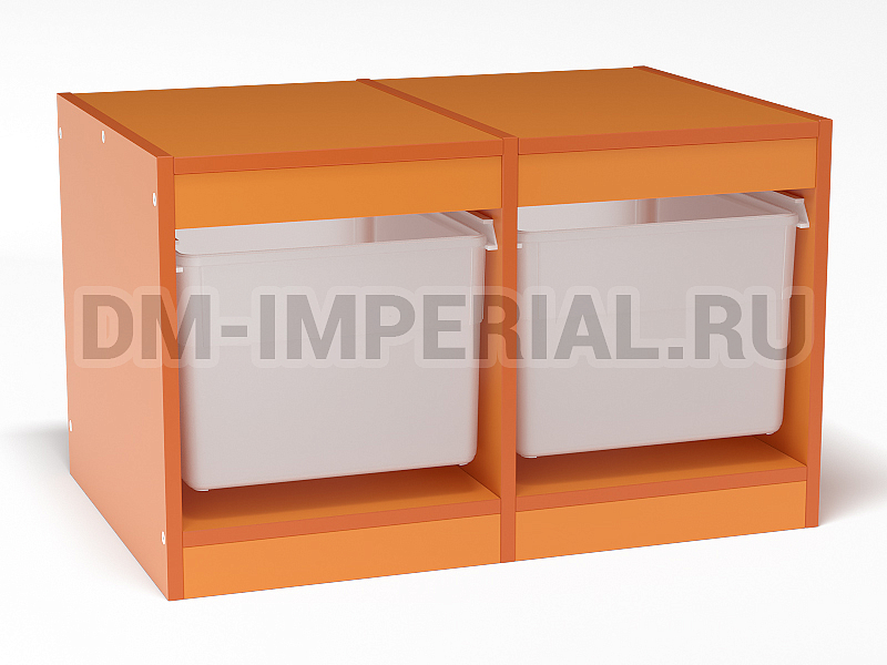 Двухсекционный стеллаж для хранения изготавливается согласно требованиям ГОСТ, ФГОС и СанПиН к безопасности и удобству использования детской мебели. В процессе производства использовались исключительно разрешенные, не токсичные, экологичные материалы. Окрашивания выполняются стойкими к истиранию, устойчивыми к механическим повреждениям составами. Контейнеры пластиковые.