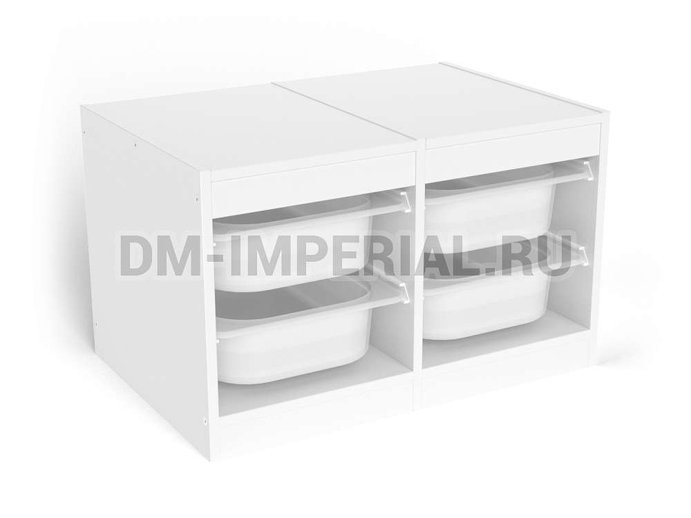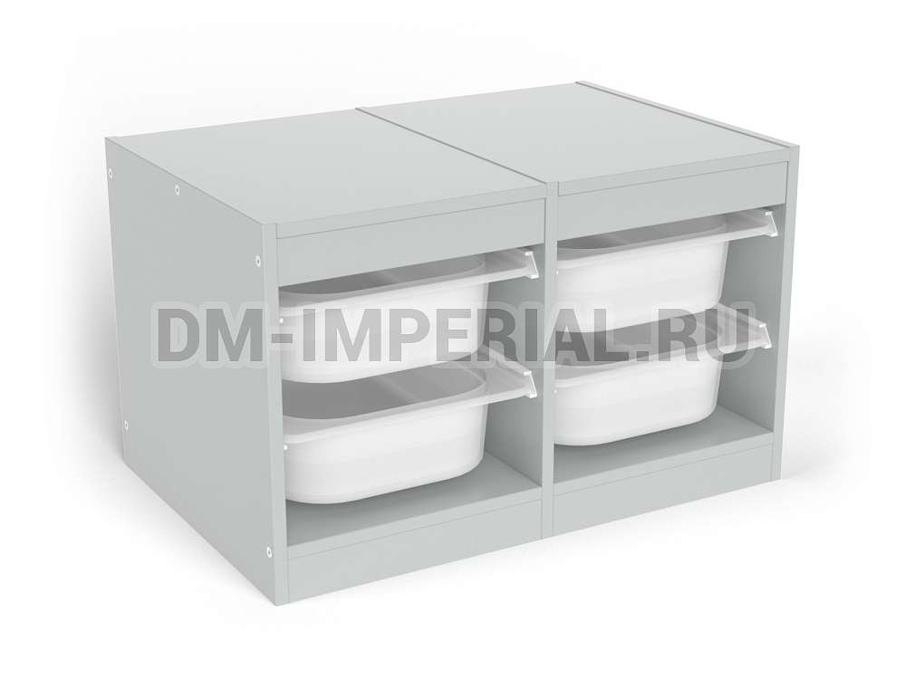 Данный стеллаж выпускается в рамках модульной серии стеллажей для хранения и может комбинироваться с другими моделями в уникальные системы. Является двухсекционным. Габариты - 730х420х500 мм. Выпускается в двух вариантах исполнения: с двумя контейнерами или с одним. Первая модель оснащается компактными ящиками, вторая - ящиками большего объема. При выборе стоит ориентироваться на планируемое предназначение стеллажа. Например, большой контейнер отлично подойдет для размещения больших предметов, например, спортинвентаря или различных творческих аксессуаров и инструментов.
