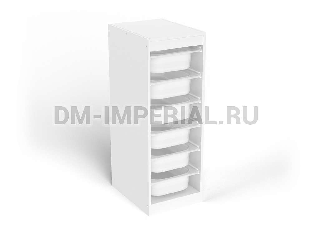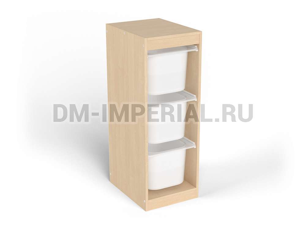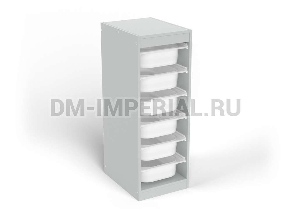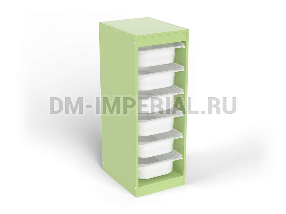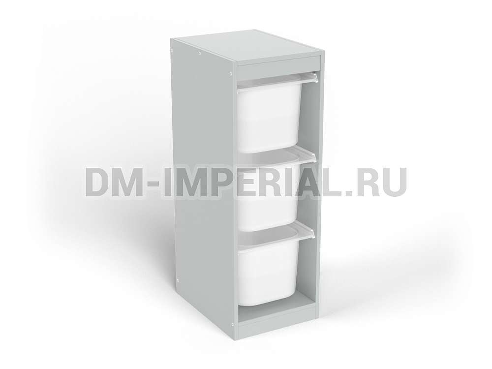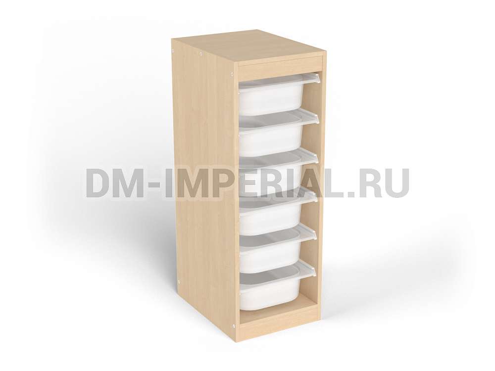 Предлагается три вида наполнения: 6 контейнеров небольшого объема, 3 контейнера среднего объема или 2 больших контейнера. Выбор определяется предназначением стеллажа. Средние и большие контейнеры хорошо подойдут для хранения объемных предметов. Маленькие ящички - для различных мелочей, наполняющих досуг детей в ДОУ.