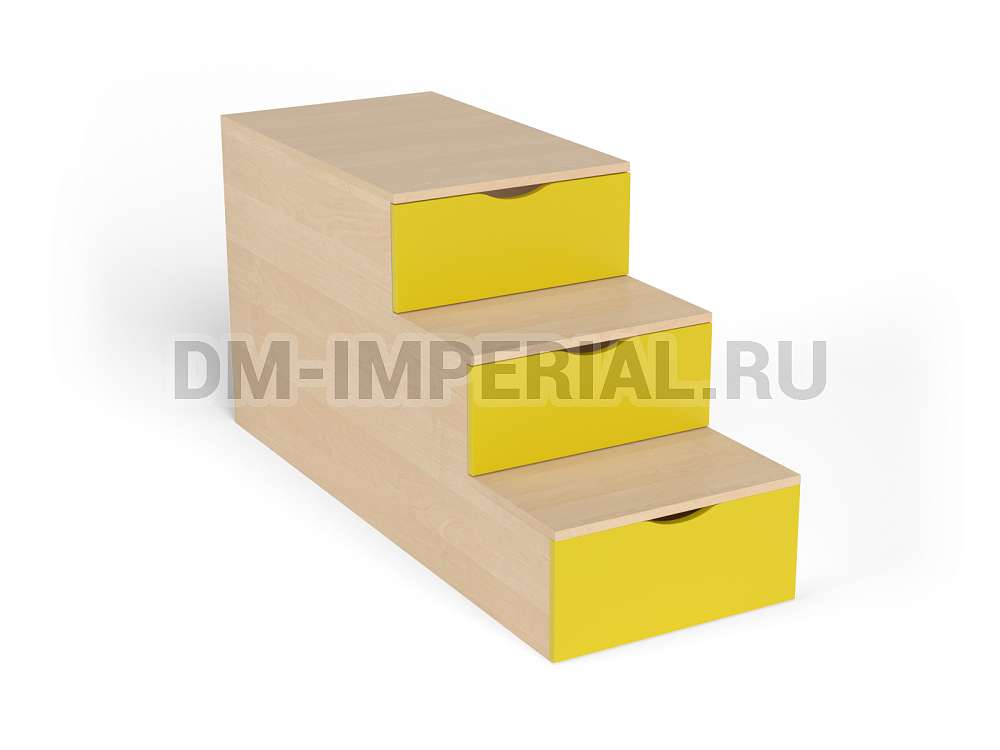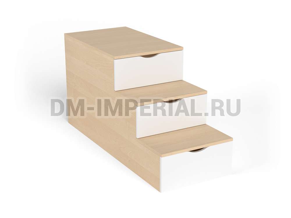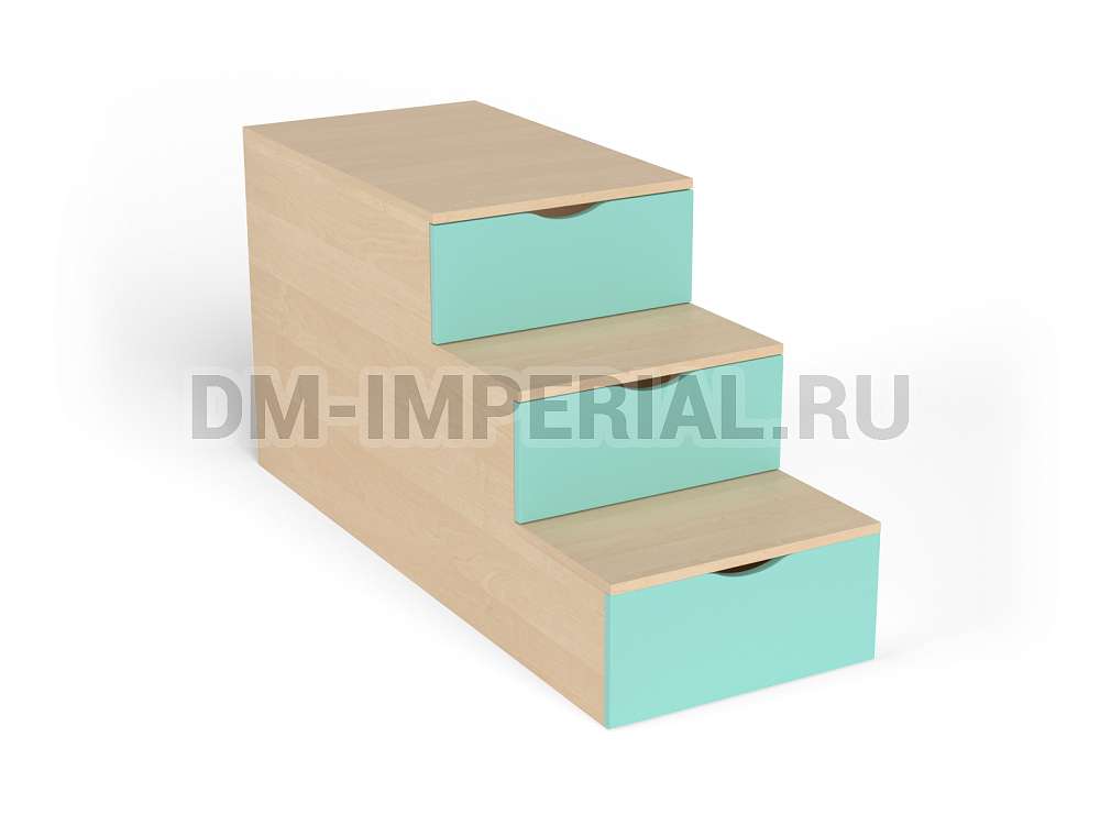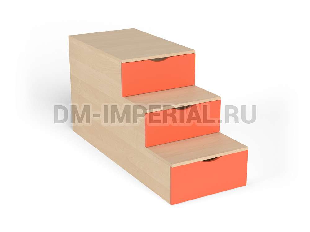 Габаритный размер изделия (ШхГхВ) 460*1210*600 мм. Конструкция изделия Состоит из двух боковин, задней стенки и трех ступенек с ящиками. Тип ручки на фасадах вырез. Расположение ручки на фасадах торцевое расположение по верхнему краю. Вид материала каркаса ЛДСП. Толщина материала каркаса 16мм. Вид материала кромки ПВХ. Толщина кромочного материала 1мм; 2мм. Вид материала дна ящиков ЛХДФ. Толщина материала дна ящиков ≥3,2мм. Вид опор нерегулируемые.
