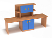 Конструкция уголка удобна и практична. Высота оптимальна для пользования взрослым и ребенком. Предусмотрена просторная столешница, а также открытые и закрытые зоны хранения. Здесь можно расположить предметы для творчества (органазейры с цветными карандашами и фломастерами, подставки с обычной и цветной бумагой, контейнеры с краской и пластилином и т.д), а также различные книжки, микроскопы, лупы. Уголок можно дополнить творениями детей – нарисованными картинами в рамках, поделками, вышивками и т.д.